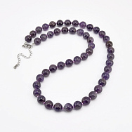 Кольє Аметист, Натур. камінь, 47 см, Нерж. сталь (BUS-058753)