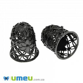 Ковпачок металевий ажурний, 15х12,5 мм, Темне срібло (OBN-025849)