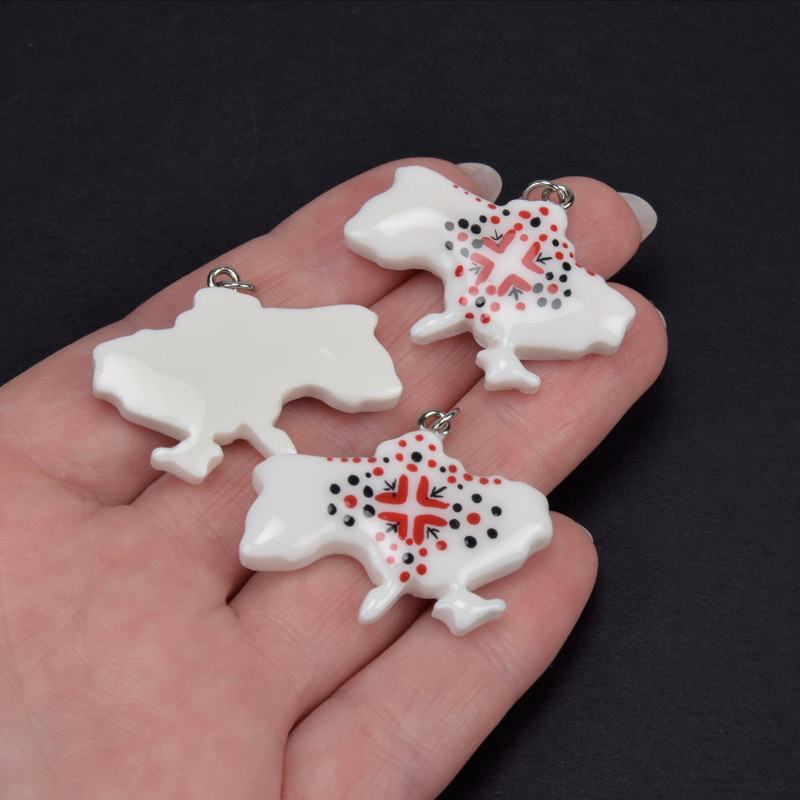 Фурнітура з нержавіючої сталі. Діаметр кільця 6 мм.Підвіска Карта України з полімерної глини, 32х26 мм, Біла (POD-059388) / 1 штPOD-059388169.00₴ / шт -