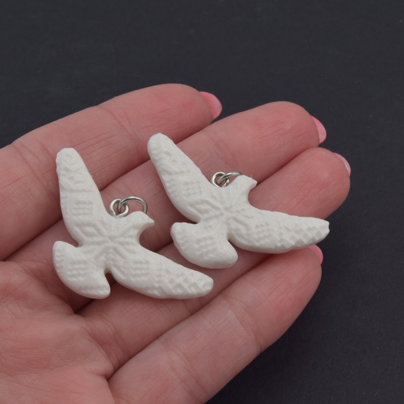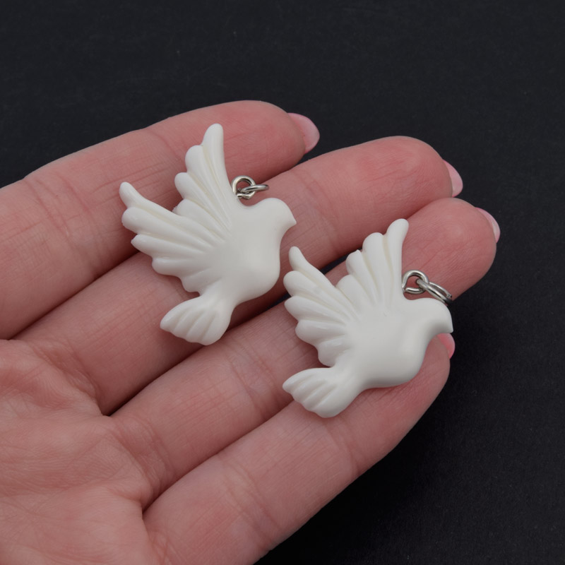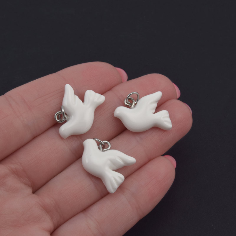 Підвіска Голуб із полімерної глини, 20х15 мм, Біла (POD-058995)
