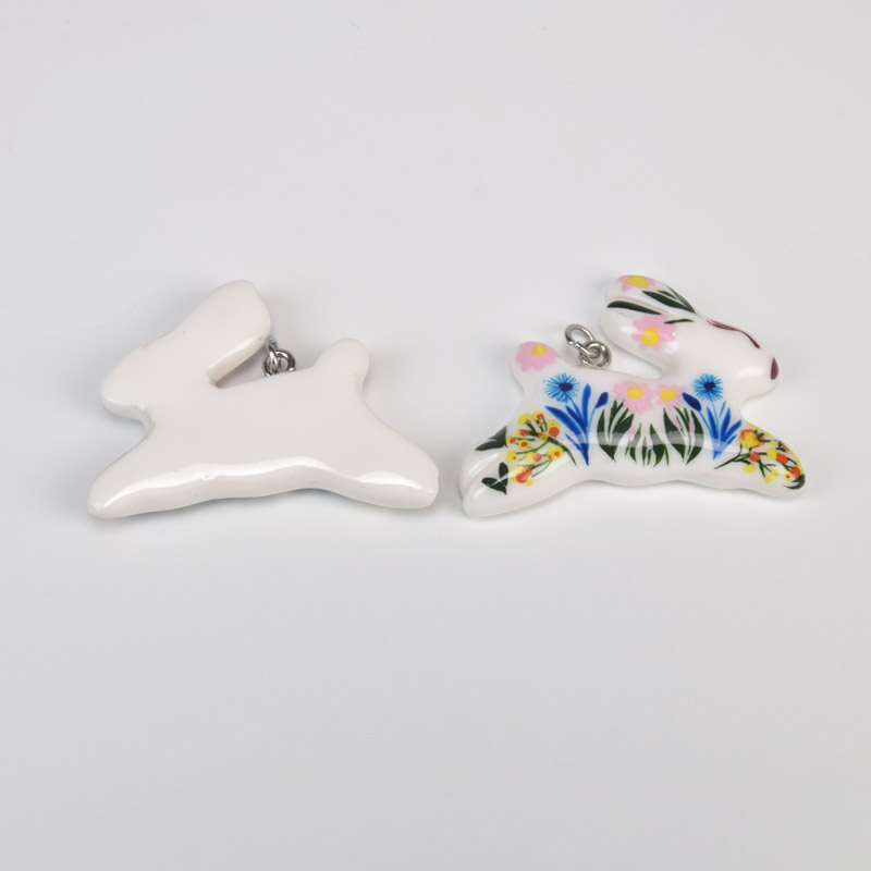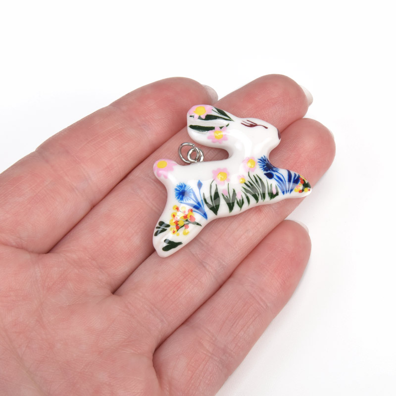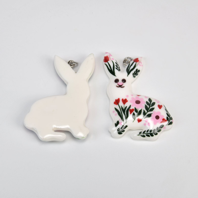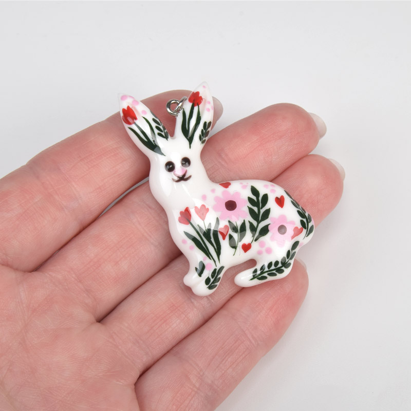 Підвіска Зайчик з полімерної глини, 47х30 мм, З малюнком (POD-059373)