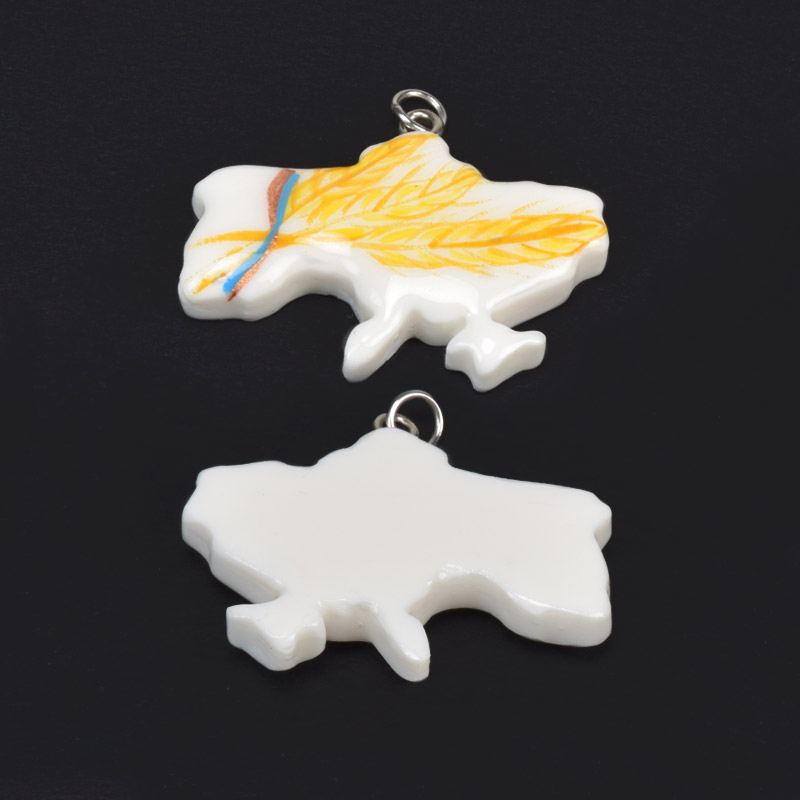 Підвіска Карта України з полімерної глини, 32х26 мм, З малюнком (POD-059391)