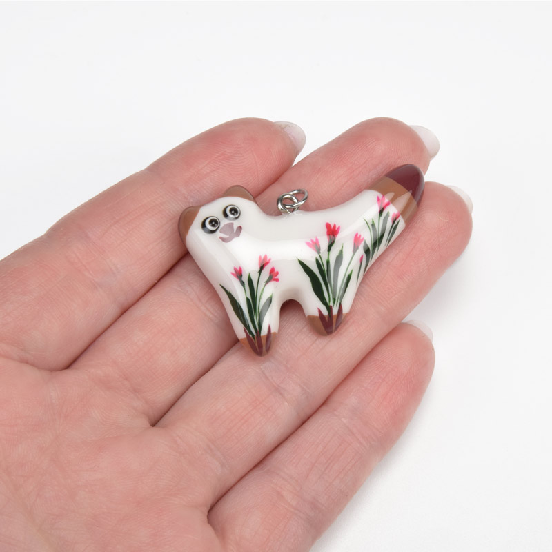 Підвіска Котик з полімерної глини, 40х27 мм, З малюнком (POD-059375)