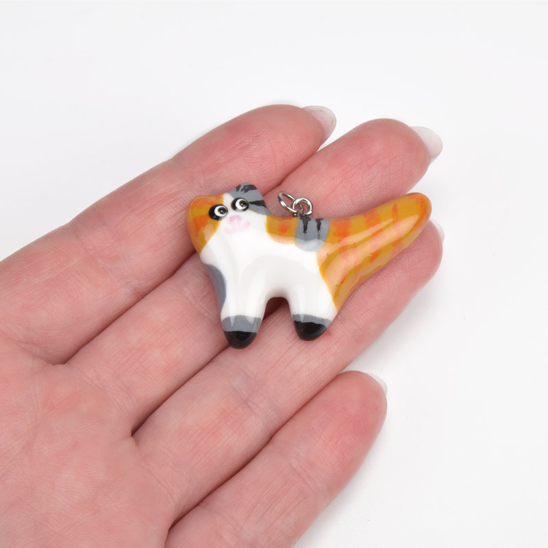 Фурнітура з нержавіючої сталі. Діаметр кільця 6 мм.Підвіска Котик з полімерної глини, 40х27 мм, Біло-коричневий (POD-059380) / 1 штPOD-059380295.00₴ / шт -
