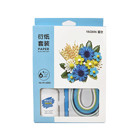 У набір входить: 2 картинки-заготовки, пінцет, інструмент, клей, смужки паперу,