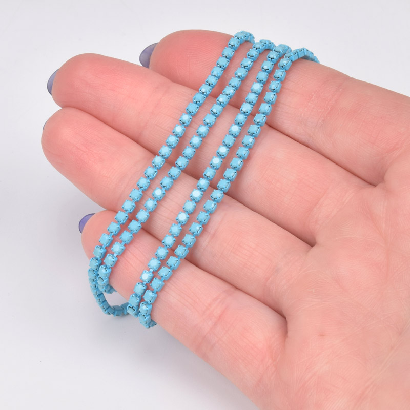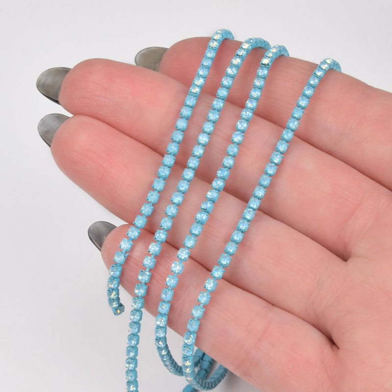 • Стразовий ланцюг SS6 - 2,0 мм, Блакитний, Стрази скляні блакитні опал (ZEP-061031)