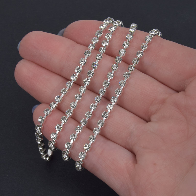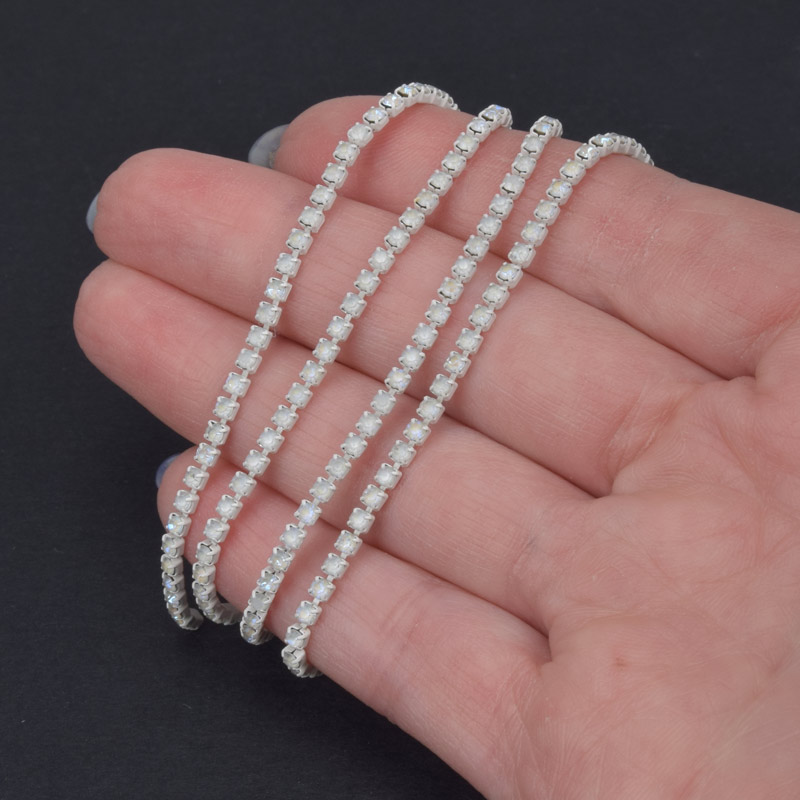• Стразовий ланцюг SS12 (2,8 мм), Світле срібло, Стрази скляні білі (ZEP-040035)