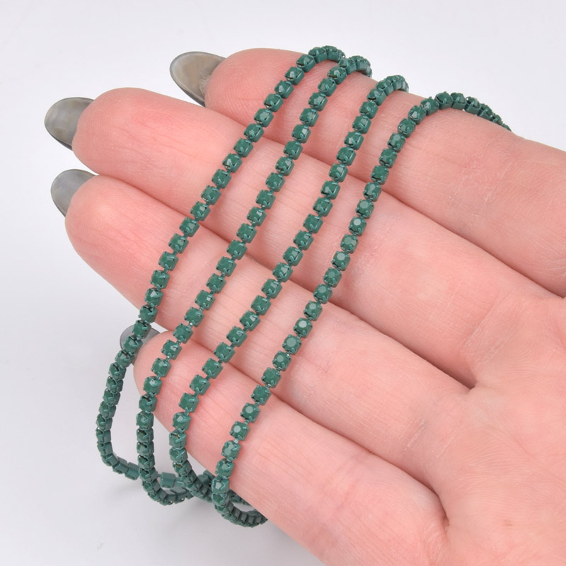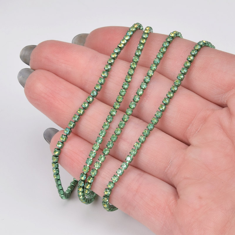 • Стразовий ланцюг SS6 - 2,0 мм, Зелений, Стрази скляні зелені хамелеон (ZEP-061020)
