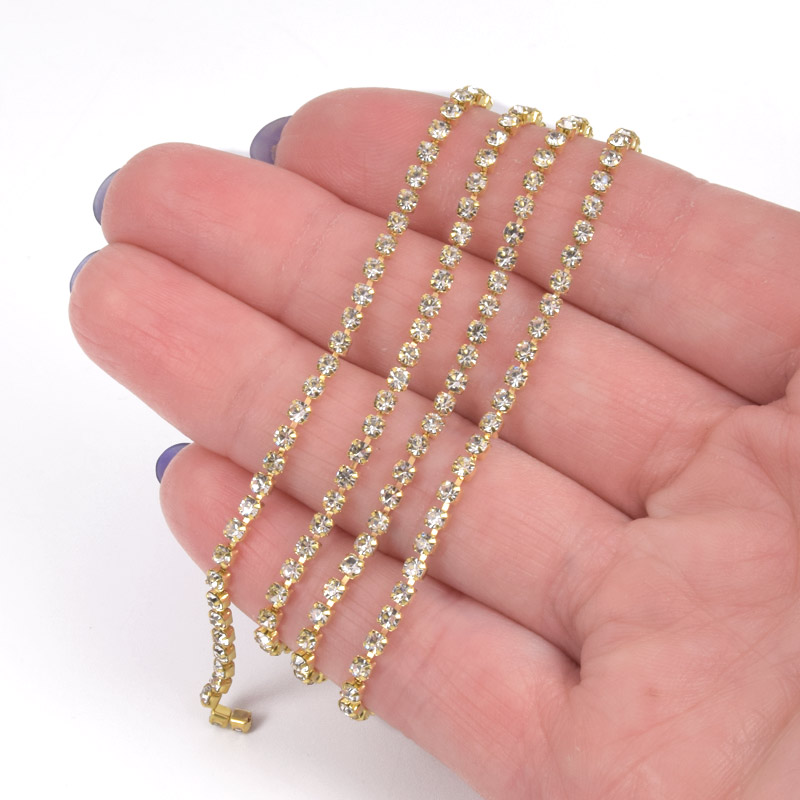 • Стразовий ланцюг SS6 - 2,0 мм, Золото, Стрази скляні білі (ZEP-036409)