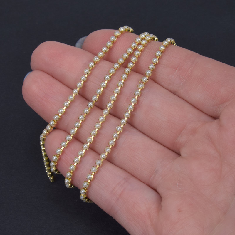 • Перлинний ланцюг SS6 (2,0 мм), Золото, Перлини пластикові білі (ZEP-043006)