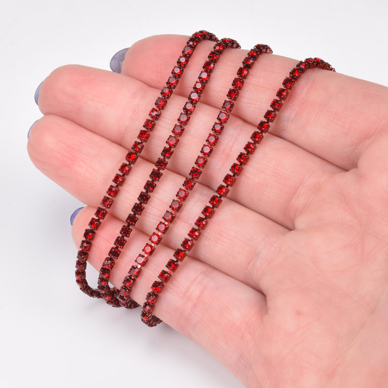• Стразовий ланцюг SS6 - 2,0 мм, Бордовий, Стрази скляні бордові (ZEP-061014)
