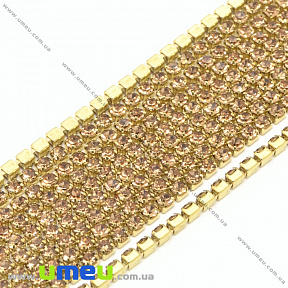 Стразовий ланцюг SS6 - 2,0 мм, Золото, Стрази скляні різнокольорові (ZEP-036390) / 1 м