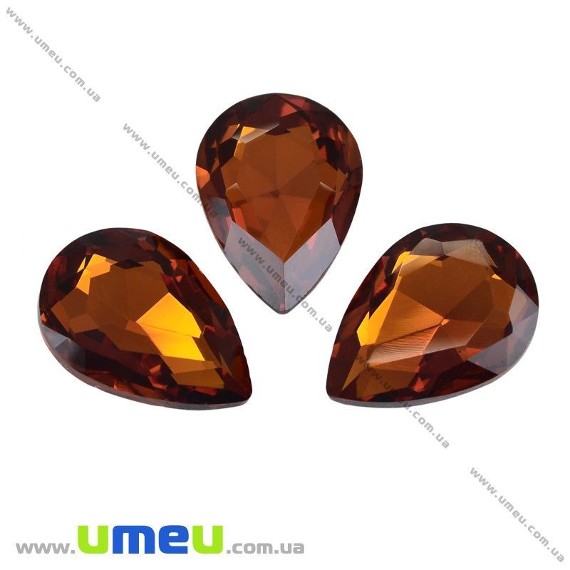 Ріволі скляний, Крапля гранована, 25х18 мм, Коричневий (KAB-010014) / 1 шт