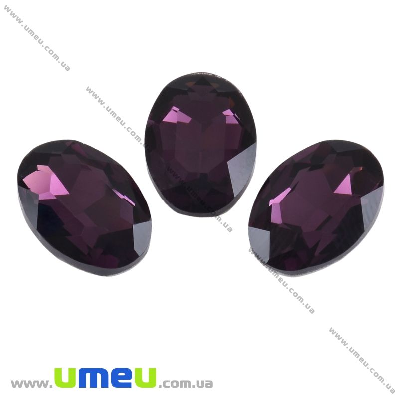 Ріволі скляний, Овал гранований, 14х10 мм, Фіолетовий (KAB-010036) / 1 шт