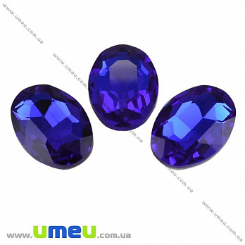 Ріволі скляний, Овал гранований, 14х10 мм, Синій (KAB-010038) / 1 шт
