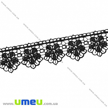 Мереживо плетене Квіти, 30 мм, Чорне (LEN-011931) / 1 м