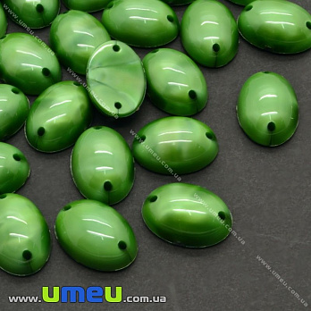 Пришивний кристал пласт. Овал перламутровий, 14х10 мм, Зелений (KAB-012088) / 1 шт