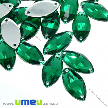 Пришивний кристал пласт. Човник гранований, 15х7 мм, Смарагдовий (KAB-012199) / 1 шт