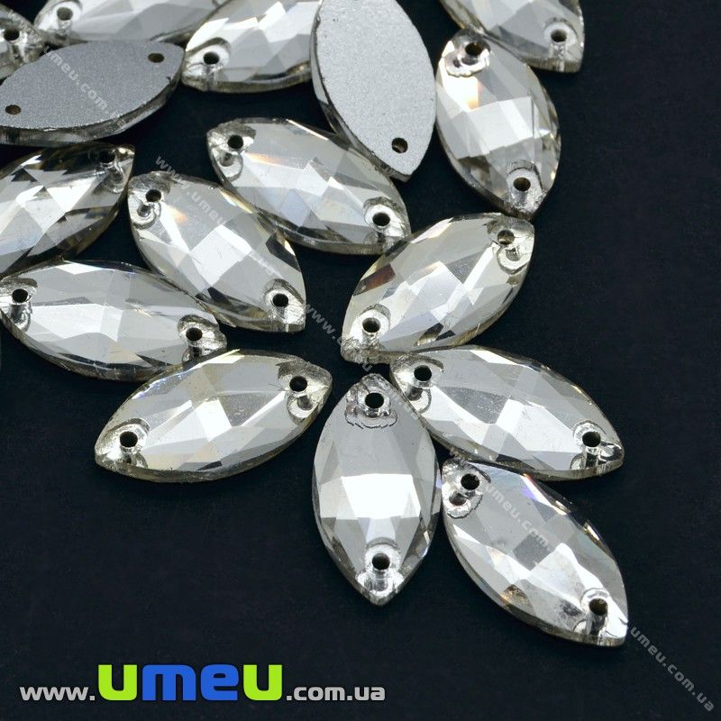Пришивний кристал скляний Човник гранований, 22х13 мм, Білий (KAB-012579) / 1 шт