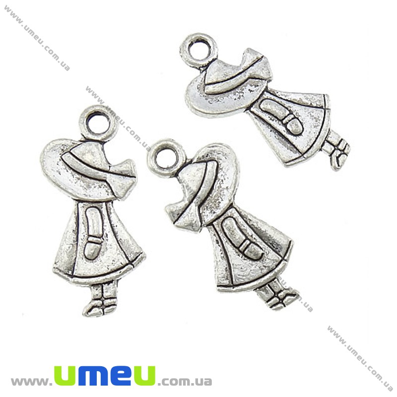 Підвіска метал. Дівчинка (двостор.), 25х11 мм, Античне срібло (POD-001262) / 1 шт