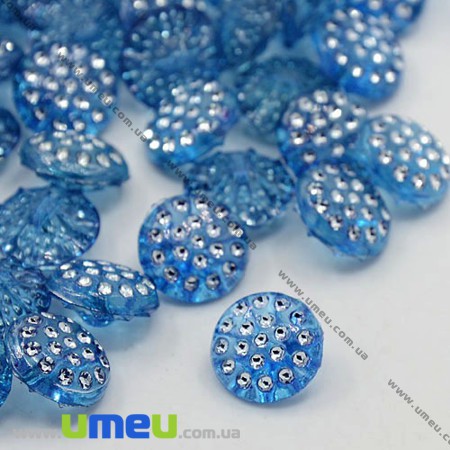 Гудзик пластиковий на полуніжці Круглий «Стразовий ефект», 13 мм, Блакитний (PUG-012857) /