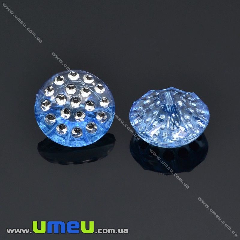 Гудзик пластиковий на полуніжці Круглий «Стразовий ефект», 13 мм, Блакитний (PUG-012860) /
