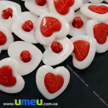 Гудзик пластиковий на ніжці Серце, 15х14 мм, Червоно-Білий (PUG-012915) /