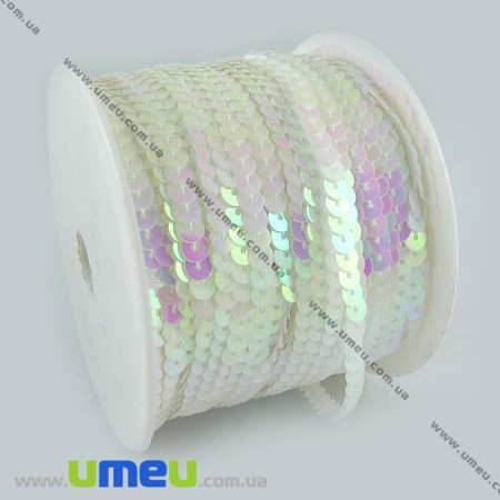 Паєтки Китай на ниті, 6 мм, Білі АВ (PAI-013095) / 1 м