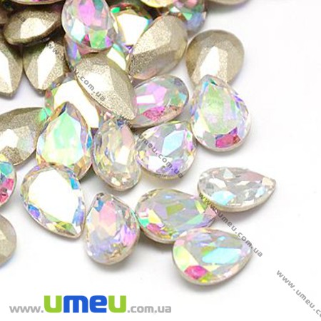 Ріволі скляний УЦЕНКА, Крапля гранована, 14х10 мм, Білий АВ (KAB-013227) / 1 шт