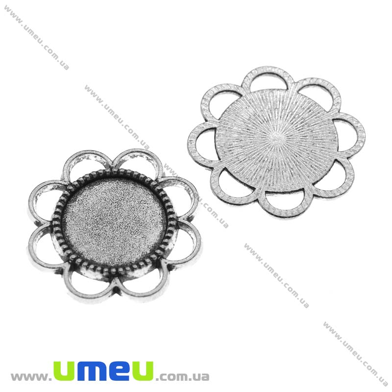 Основа кругла ажурна, 25 мм, 14 мм, Античне срібло (OSN-013498) / 1 шт