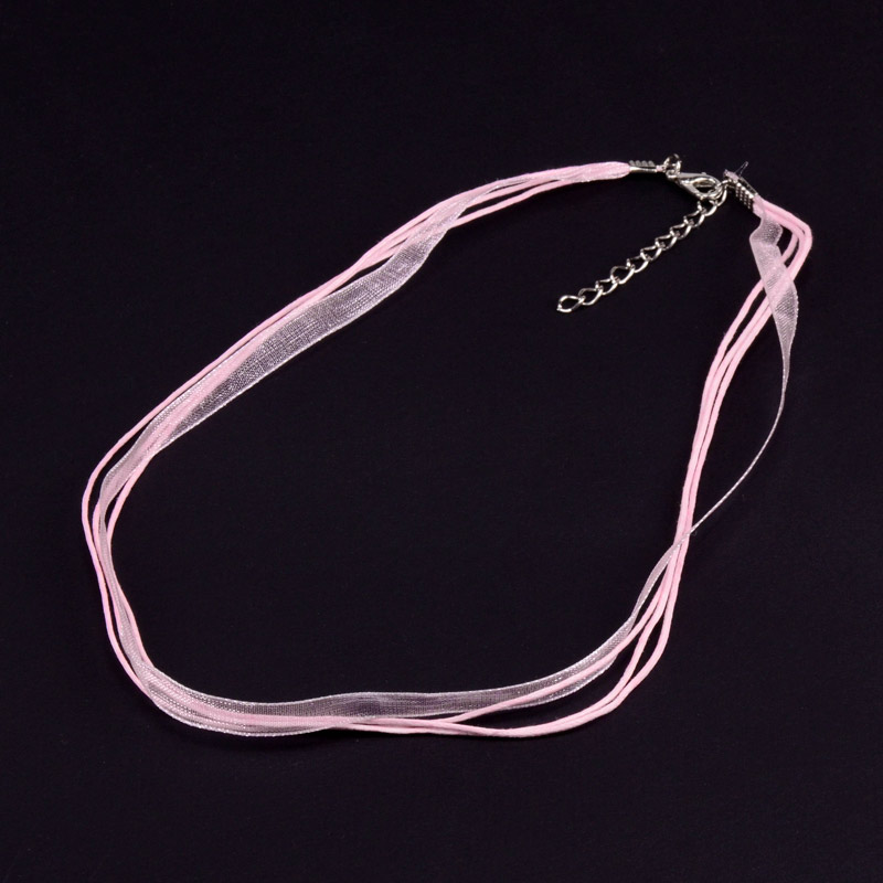 Основа на шию (органза та вощений шнур), 42 см, Рожева (OSN-001364) / 1 шт