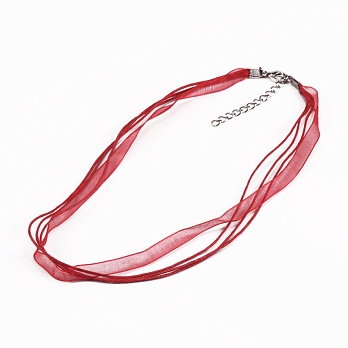 Основа на шию (органза та вощений шнур), 42 см, Червона (OSN-001368) / 1 шт