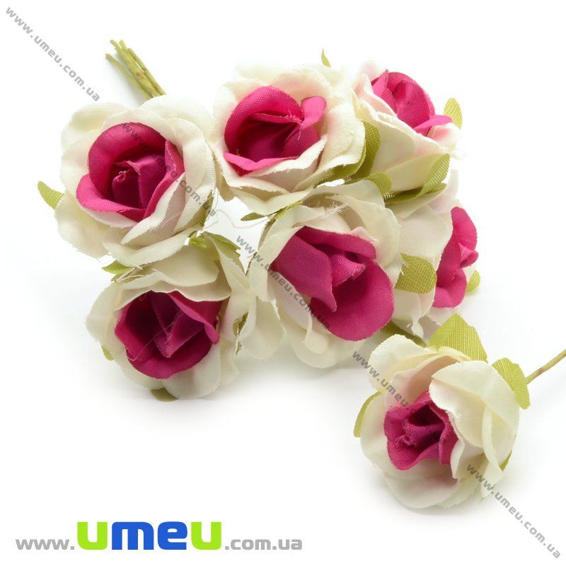 Роза тканинна, 20 мм, Малиново-кремова (DIF-015030) / 1 шт