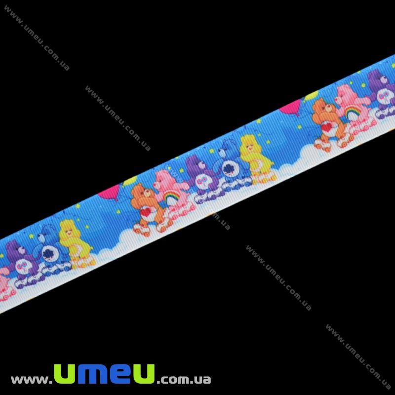 Репсова стрічка з малюнком Ведмедики Гаммі, 25 мм, Синя (LEN-001555) / 1 м