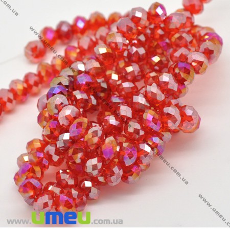 [Архів] Намистини ронделі, 8х6 мм, Червоні AB (BUS-001628) / 1 шт