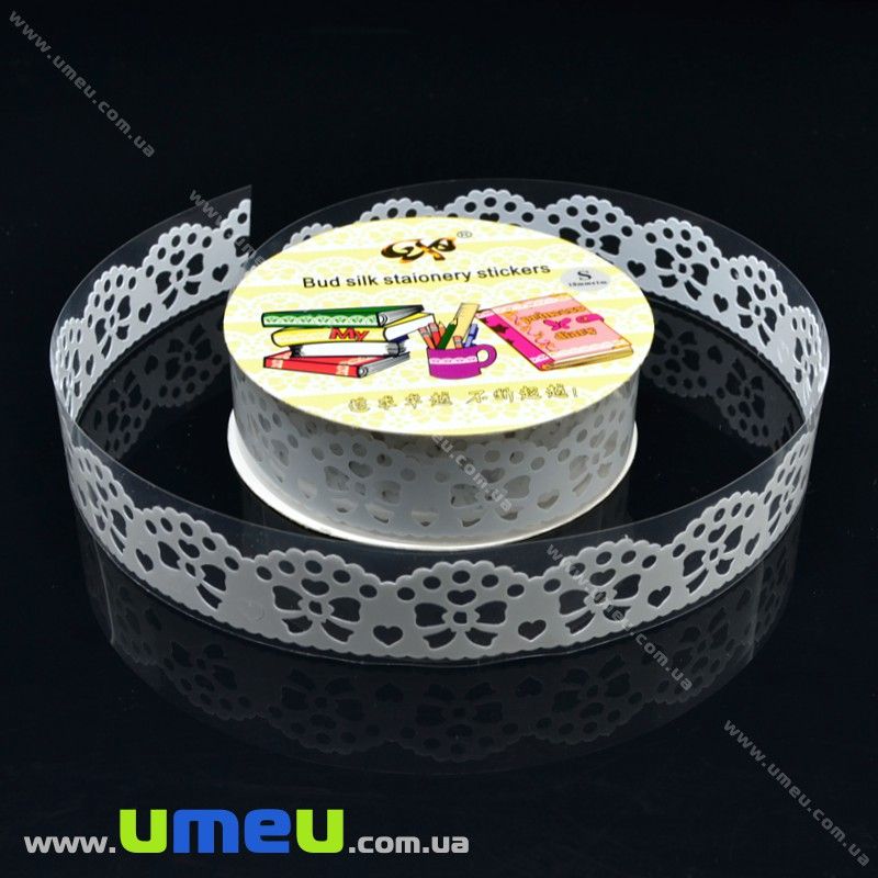 Декоративний скотч мереживний, Білий, Бантики, 15 мм (DIF-017902) / 1 катушка (1 м)