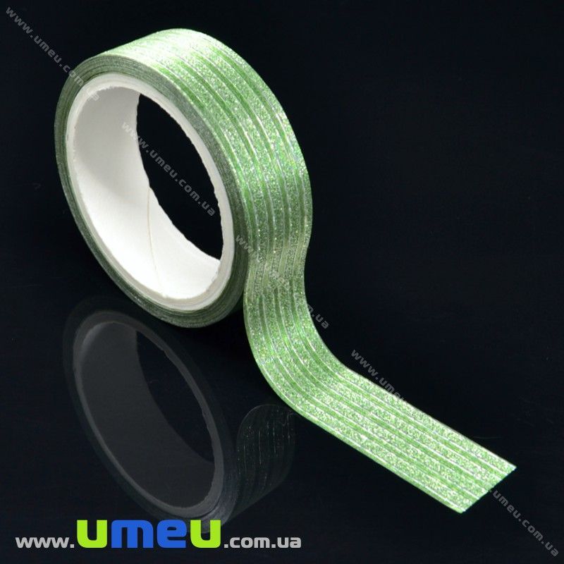 Декоративний скотч гліттерний, 15 мм, Зелений (DIF-017914) / 1 катушка (4 м)