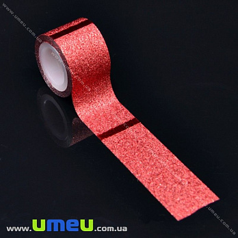 Декоративний скотч гліттерний, 11 мм, Червоний (DIF-017952) / 1 катушка (1 м)