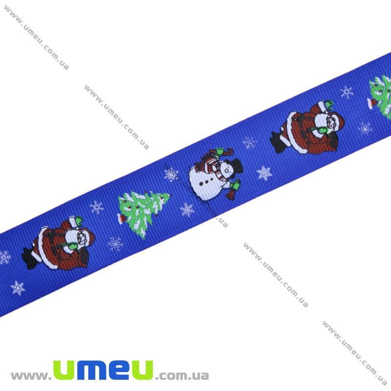 Репсова стрічка з новорічним малюнком Дід Мороз, 25 мм, Синя (LEN-017975) / 1 м