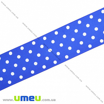 Репсова стрічка в горошок, 40 мм, Синя (LEN-017983) / 1 м