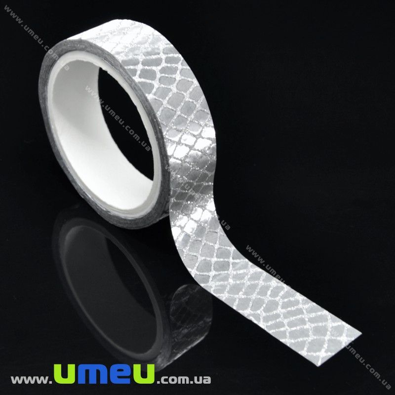 Декоративний скотч гліттерний, 15 мм, Сріблястий (DIF-018016) / 1 катушка (3 м)