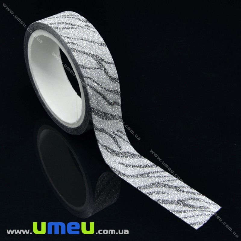 Декоративний скотч гліттерний, 15 мм, Сріблястий (DIF-018021) / 1 катушка (3 м)