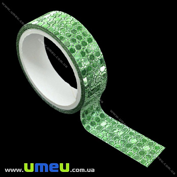 Декоративний скотч гліттерний, 15 мм, Зелений (DIF-018170) / 1 катушка (3 м)
