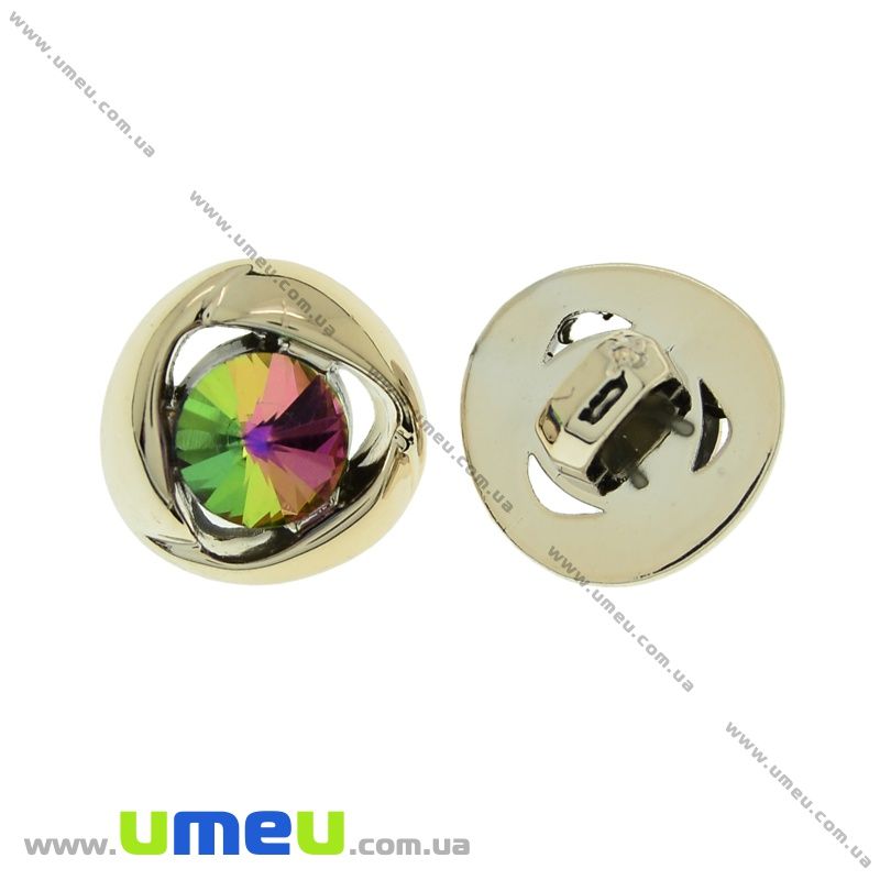 Гудзик пластиковий на ніжці зі стразами, 11,5 мм, Різнобарвний, Світле золото (PUG-021467) /