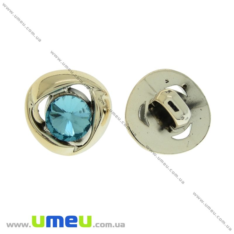 Гудзик пластиковий на ніжці зі стразами, 11,5 мм, Блакитний, Світле золото (PUG-021468) /
