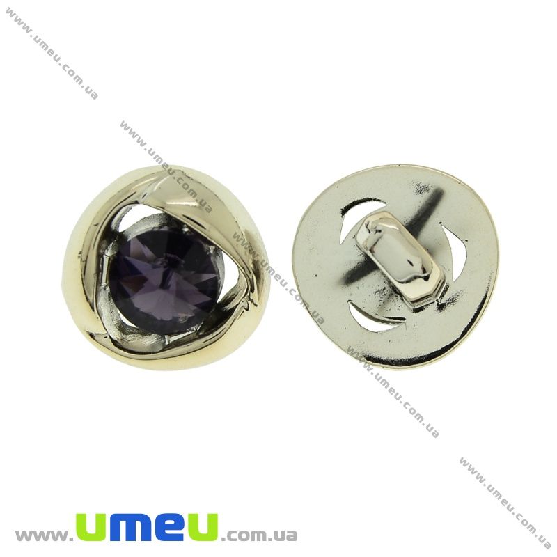 Гудзик пластиковий на ніжці зі стразами, 11,5 мм, Фіолетовий, Світле золото (PUG-021469) /