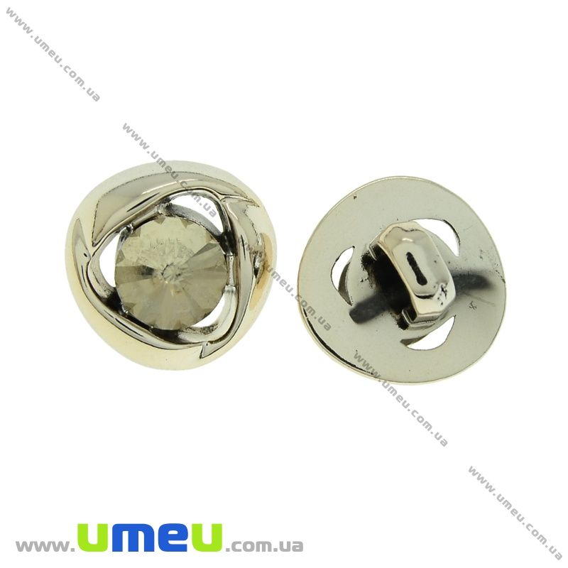 Гудзик пластиковий на ніжці зі стразами, 11,5 мм, Бежевий, Світле золото (PUG-021472) /