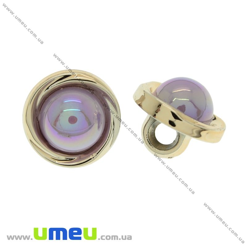 Гудзик пластиковий на ніжці з полубусіной, 12 мм, Бузковий, Світле золото (PUG-021478) / 1 шт