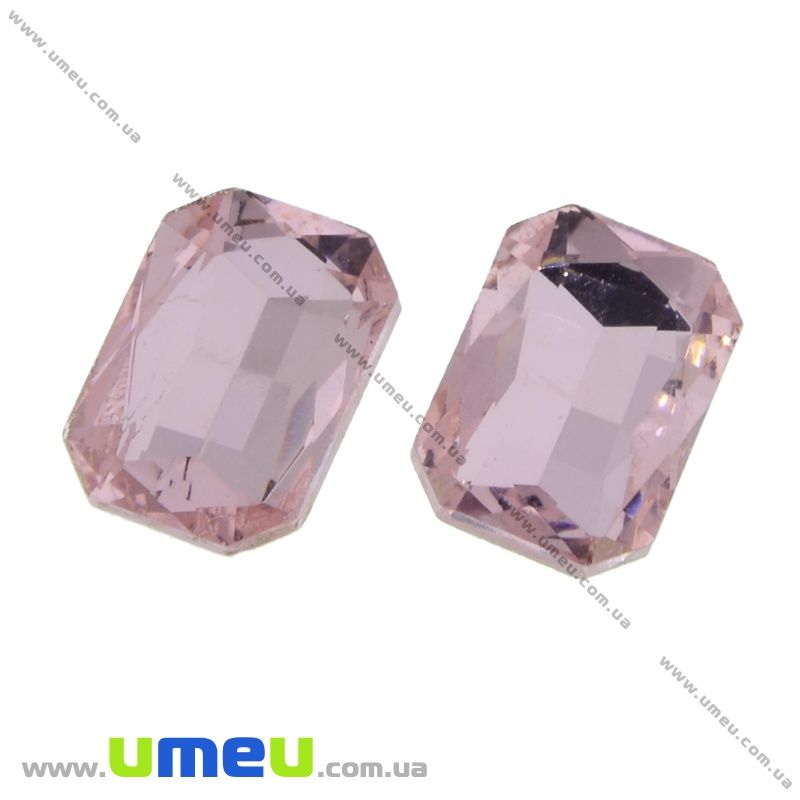 Ріволі скляний, Прямокутний гранований, 14х10 мм, Рожевий (KAB-021981) / 1 шт