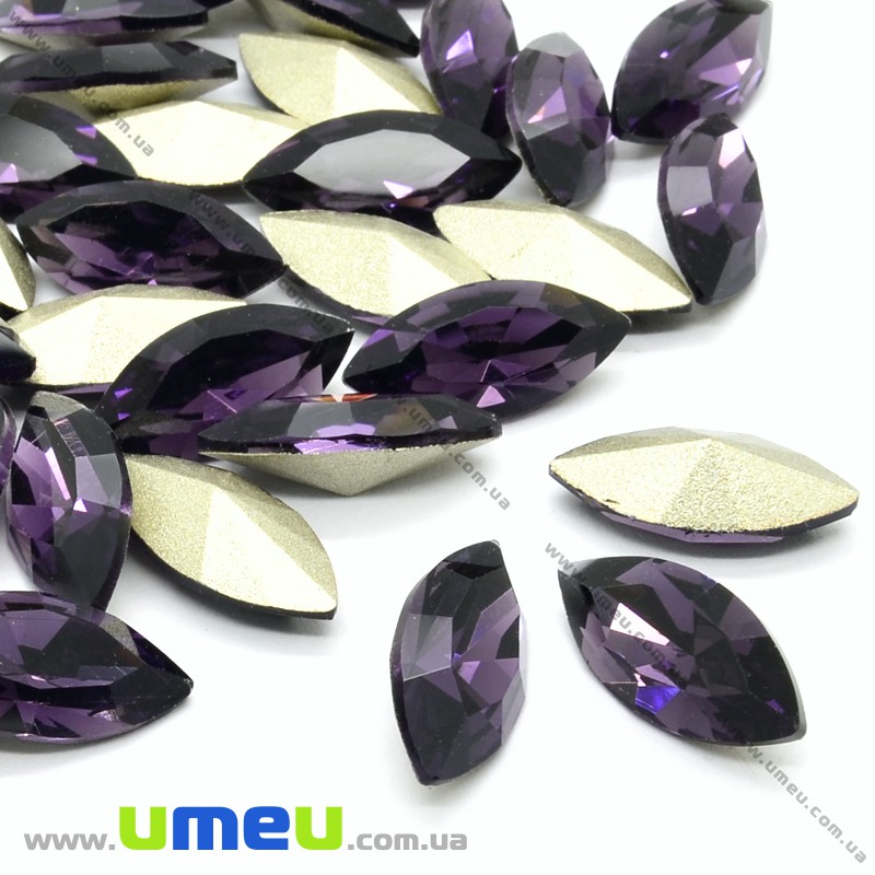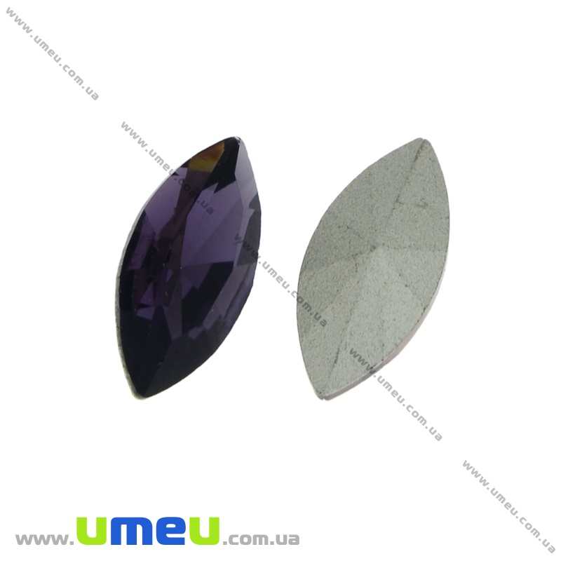 Ріволі скляний, Човник гранований, 15х7 мм, Фіолетовий (KAB-021999) / 1 шт